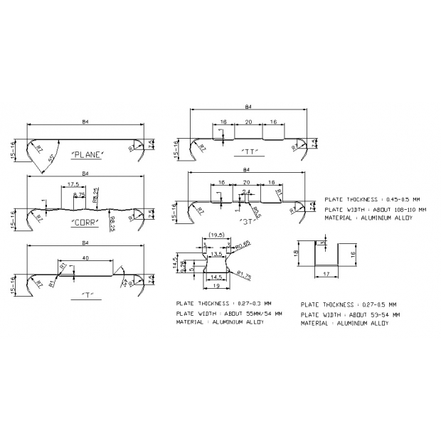| Raw Material | Aluminum alloy, Plate thickness: 0.45 ~ 0.50 mm Plate thickness: 0.27 ~ 0.30 mm |
